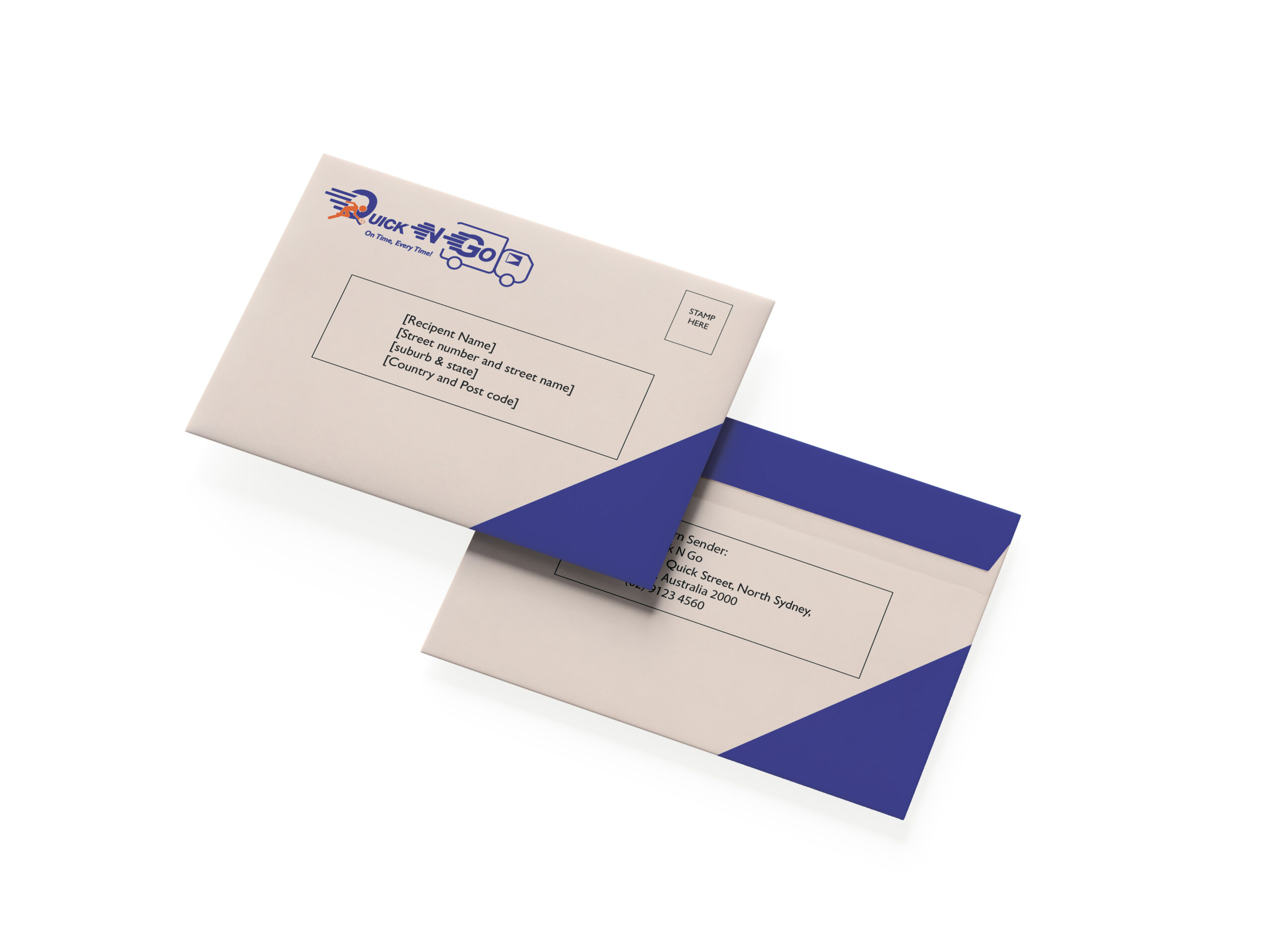 Create a visual identity for a new courier company called Quick N Go. The branding should stand out from competitors and show a fresh, modern side to courier services.
