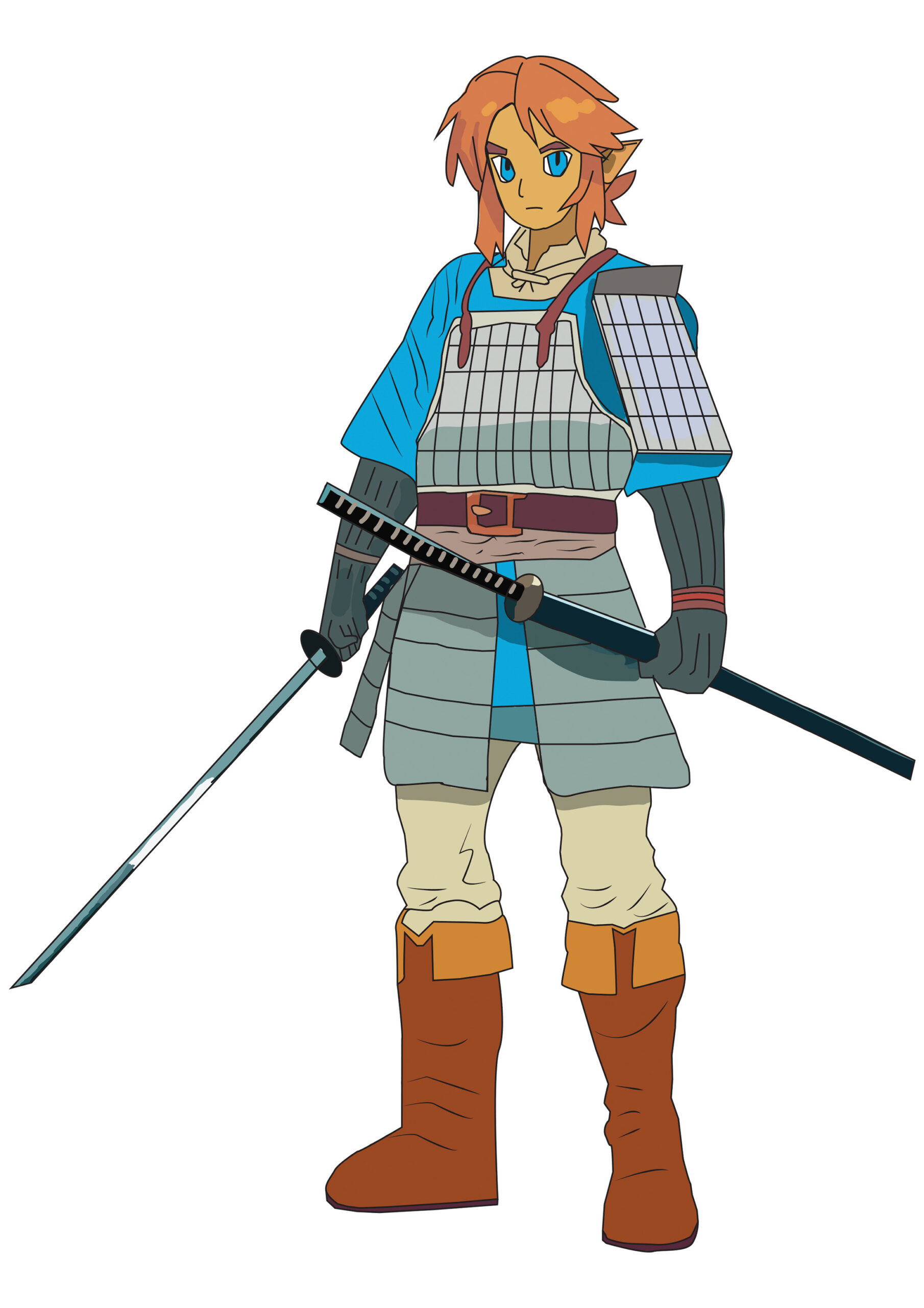I designed a character based on Link from Zelda, mixed with samurai-style armour to create a unique design.